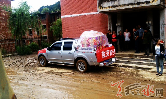 天天天水网讯19日傍晚开始,天水市出现了大范围强降水天气,暴雨造成秦州区娘娘坝乡柳林村部分群众房屋倒塌,有10户群众的房屋直接被洪水冲毁,100多人无家可归。天水融源新材料有限公司总经理刘瑞军闻讯后,携全体员工积极行动,在办公楼内安置灾区群众100多人,组织了两辆装载机清理淤泥、疏通道路,同时给受灾群众送去了方便面、矿泉水、奶粉等生活用品,并及时组织受灾群众开展生产自救,帮他们度过难关。