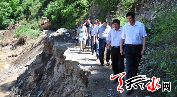 天天天水网讯 6月25日,中共天水市委常委、政法委书记赵卫东深入316国道、秦州区娘娘坝镇,麦积区甘泉镇、麦积镇等地,实地检查两区受灾道路抢通保通工作,并就认真贯彻落实6月20日市委市政府防汛救灾工作紧急会议精神,全力以赴确保受灾道路畅通工作进行安排部署。
