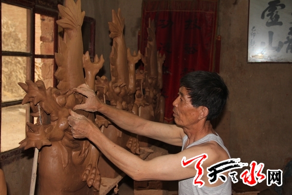 泥土为伴,平中见奇。地处散渡河畔的永安村,全村主要劳力长期从事脊兽产品的制作和销售。他们制作的脊兽产品,形象逼真,栩栩如生。用于房屋建筑和庙宇,远销青海、西宁、银川、乌鲁木齐等省市(区)。目前,永安村制作脊兽产品的文化型农户已达300多户,几近家家有工厂,户户有企业,户均脊兽等产品年收入超两万,村民张守贤还一家办起了两个脊兽厂,年纯收入5万余元。据了解,甘谷脊兽已被甘肃省确定为非物质文化遗产。