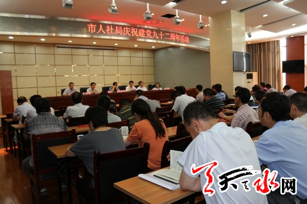 天天天水网讯【通讯员石心惠 移红霞】7月1日,天水市人社局举行庆祝建党92周年活动,全局160多名党员干部济聚一堂,采取上堂党课、表彰先进等灵活多样的方式,共同庆祝党的生日。