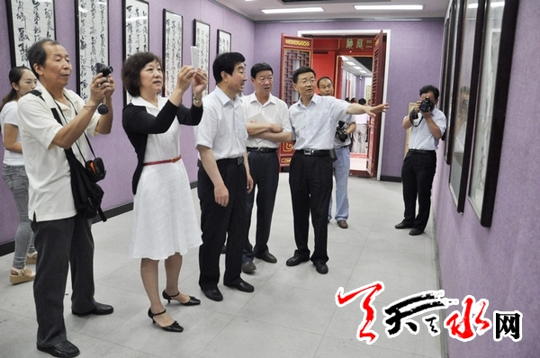 市领导谢简平、黄孝荣、霍卫平、杨建莹、白晓玲,市政协秘书长王振宇,市委宣传部、市县区文联负责人,书法爱好者200多人出席了开展仪式并参观了展览。记者 马放摄