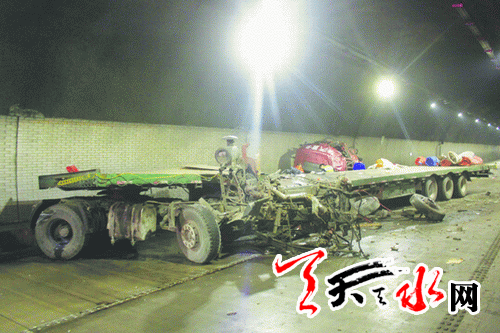 天天天水网讯(记者 蔚军平 通讯员 苏应文)7月2日11时45分时,一辆山东籍半挂货车行驶至宝天高速公路麦积山隧道内发生交通事故,未载货物的半挂车横向停在路面上,车身与驾驶室分离后,驾驶室严重变形,一人被困。