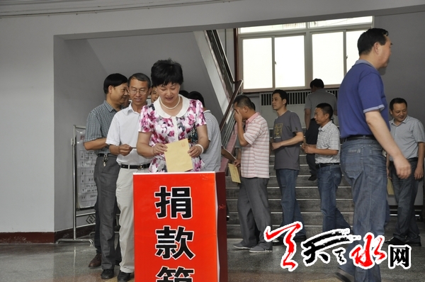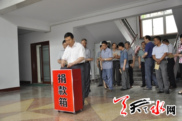 7月19日下午,天水市人大常委会机关干部职工共同伸出援手,为因近期强降雨受灾的地区捐款。当天,共捐款2.17万元。记者 王晓馨 摄