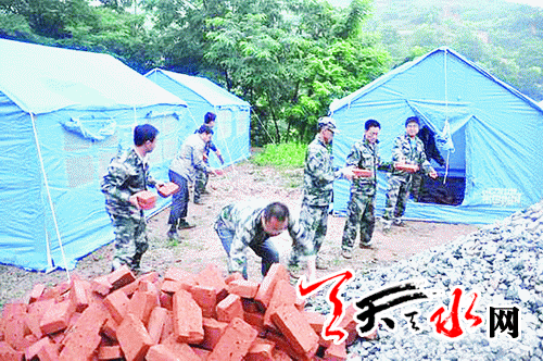 (搭建帐篷 安置受灾村民)