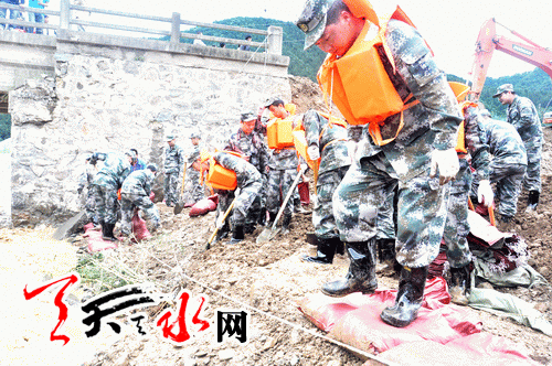 为切实加快水毁设施抢通进度,解决受灾群众行路、吃水、用电困难,秦州区自7月14日开始,在娘娘坝镇组织开展抢险救灾大会战行动,一场由各部门通力合作、党政军民广泛参与的抗洪抢险大会战在灾区全面展开。