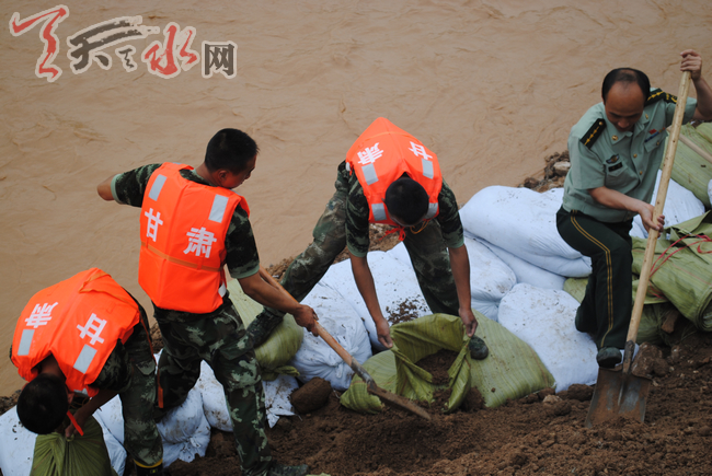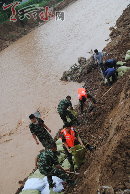 据麦积区东柯河工业园庞主任介绍说,连日来的几场大雨,致使东柯河河水暴涨,将已经修好的170米河堤冲毁,直接经济损失近400万元。河堤被毁,水患威胁东柯河工业园区,东柯河工业园区地处麦积区马跑泉镇东北角的东柯河谷北段,规划面积为167.83公顷。园区基础设施概算总投资6.3亿元,产业定位为电子信息、生物工程、新材料等高新技术产业和机械制造、电工电器、新型环保建材制造等产业。一旦园区再次遭遇洪水,后果不堪设想,为确保园区安全度汛,园区组织人员及时预防抢修,但人员紧张,进度缓慢。得知他们遇到困难后,天水武警支队麦积中队立即派出16名官兵,赶往现场,帮助东柯河工业园工作人员和民工抢险。武警官兵加入,使得抢修进度明显加快,现场抢修人员表示,将尽快修好堤坝,严密防范水患再次侵袭。