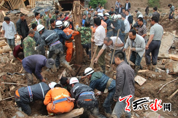 因道路交通多处塌方,去往刘家河村的路车辆根本无法进入。救援人员只能徒步前进。参谋长叶宏林命令战士带好救援设备火速向事发地出发,但由于道路因连日下雨加之部分路段的小山体滑坡,到处沉泞一片,给救援官兵到达救援现场带来了很大的困难,尽管如此,战士们心急火燎,营救生命的职责使命在召呼着他们,“快,快,一定要快!”每个战士心里发出了强烈的呼喊,脚下的道路已成了没踵稀泥,行走起来双脚如灌铅一般沉重,泥泞浸透了战士的鞋子和裤子。救援的路况实在是太差了,消防官兵们已全然不顾危险,用最快的迅速到达了救援现场。