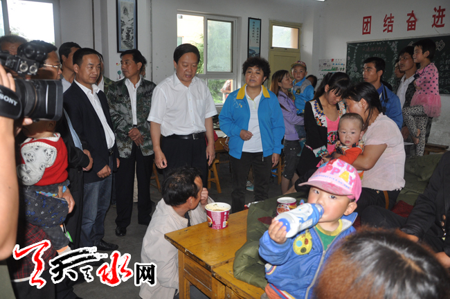 天天天水网讯(记者 王晓馨)7月27日上午,市委副书记、市政协主席杨维俊深入秦州区皂郊中学、兴隆小学等娘娘坝灾民安置点,查看受灾群众转移安置情况,看望受灾群众。