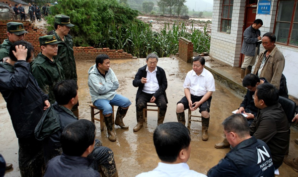 7月27日,省委常委、常务副省长刘永富在连夜召开紧急会议,研究部署了抢险救灾工作之后,休息了不到两个小时,便于当日上午一大早与市领导马世忠、王锐、张明泰、蒋晓强一道,赶赴灾情最为严重的秦州区娘娘坝镇,现场察看灾情,慰问受灾群众,指导抢险救灾。刘永富强调,要采取一切措施,抓紧转移安置受灾群众,确保人民群众生命安全。