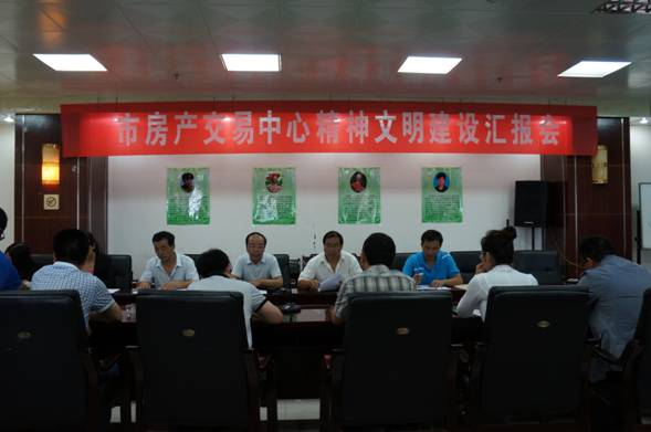 市房地产管理局副局长兼市房产交易中心主任赵振林全面汇报了中心精神文明建设各项工作。近两年多来,在省、市、区文明办的指导下,按照东关街道办事处的具体安排,中心始终高度重视精神文明建设工作,建立了一岗双责、齐抓共管的工作制度。坚持把精神文明建设工作放在了日常工作的重要议程,坚持与业务工作同研究、同部署、同落实、同检查、同考核、同奖惩。在中心深入推进精神文明建设的过程中,干部职工素质明显提高,单位形象和文明程度不断得到提升,服务意识不断增强。截止2013年6月底共办理各类房屋权属登记20万6千余例,登记面积3900万平方米,产权登记发证23万余本,房屋面积测绘鉴定1635幢,鉴定面积780万平方米,收集权属档案16万余卷。为国家代征契税8800余万元,协征契税6500余万元,代征印花税300余万元,协征营业税1400余万元,协征个人所得税250万元,协征土地出让金300余万元。支持破产改制企业,减免相关交易登记费165万元。协助公、检、法等司法机关查询房产信息资料2100余例,受理司法查封500余例。