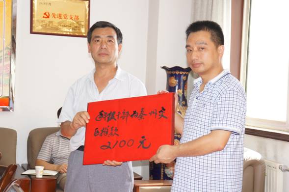 秦州区东关街道办事处任保平书记代表所属辖区接收了捐赠款项和物品并表示感谢。任书记表示一定尽快将中心的爱心送达到受灾群众的手中。