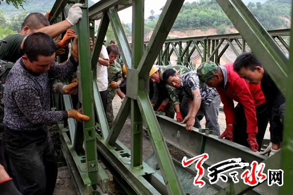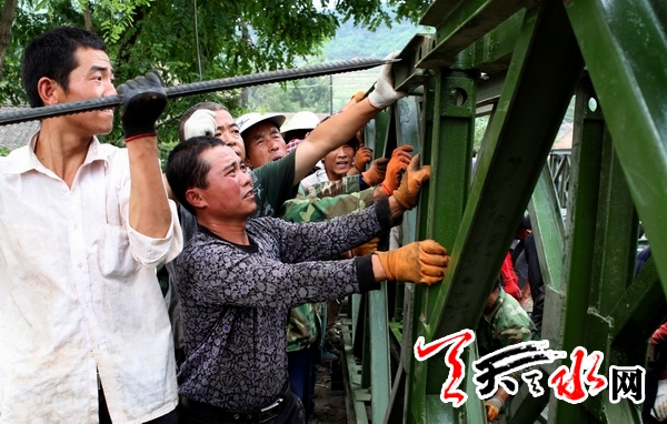 天天天水网讯(记者 孙燕芸)经过天水市交通运输部门的奋力抢修,被暴洪冲垮的秦州区娘娘坝镇柳林村战备钢桥,预计将于8月1日晚架设完成。该桥架设完成后,上李公路也将基本贯通,标志着娘娘坝镇受灾区域的28个行政村、96个自然村组对外交通的基本畅通。截止当日14时,娘娘坝镇区域的县道刘十公路、G316—庙川—花园—李子通道已全线抢通,这将为下一步救灾打下坚实的基础。