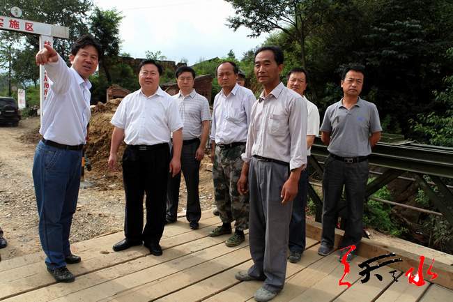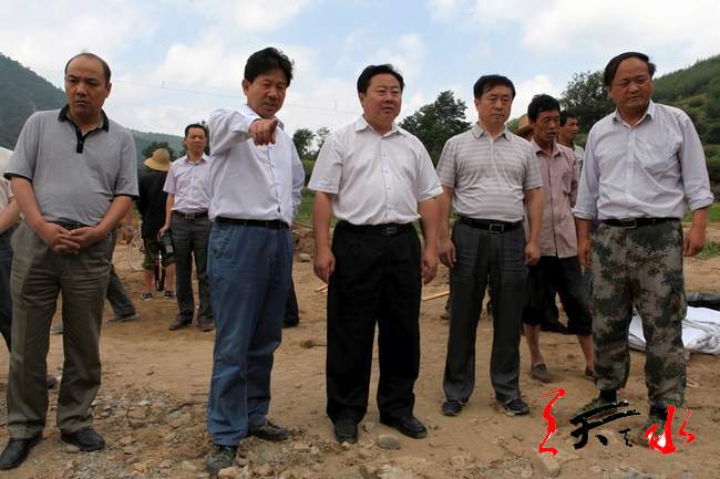 市委常委、秦州区委书记张明泰,市委常委、市委秘书长蒋晓强一同察看灾情。