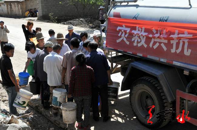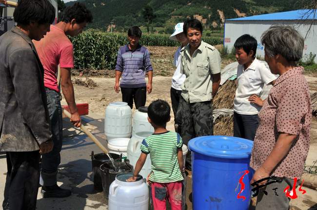 气温高达30几度的大热天,提着桶等着接水的村民们都被烈日烤晒得口干舌燥,他们也不时对送水人员表达谢意。还有一些村民憨厚的说,现在水这么宝贵,他们为了节约水源,一天除了做点饭之外很少喝水,有时连脸都不敢洗,更别说用这些水洗衣服了。王建锋听后十分感慨地说“受灾那么严重的可怜村民,说这些话听得人心里真是难受呀!”