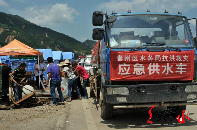 天天天水网讯【记者王莹】“这些受灾的村民非常可怜,我们给他们送些做饭解渴的水,受点累真的没什么。”8月2日,秦州区水务局抗洪救灾应急供水队的王建锋抹着脸上的汗水对记者说。