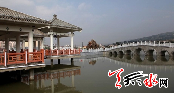 据了解,轩辕湖建设工程是清水县打造精品山水园林县城、建设西部科学发展特色县的重要举措,是推进“东扩西延北拓”县城发展战略的重点工程。工程概算总投资3800万元,总占地面积87000平方米,其中水域面积20000平方米,湖内有龙源桥、始祖桥、中华桥、九州桥、溯源桥等5座桥梁,与轩辕湖共同构成“五湖四海”的深刻内涵,湖体呈倒写的“龙”字型,公园入口入的8根龙柱象征“三皇五帝”。在建设设计理念里,该县把轩辕黄帝与中华文化有机结合,充分体现了清水作为人文始祖轩辕黄帝出生地深厚文化底蕴。