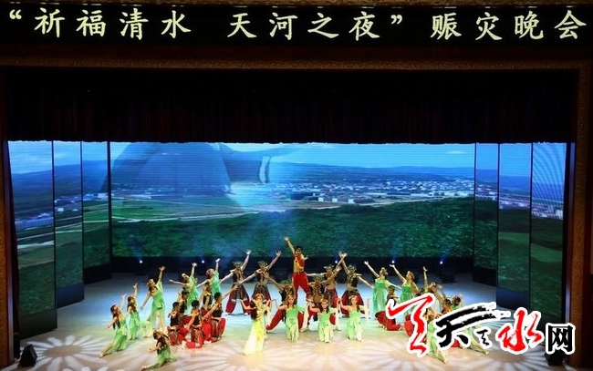 本次赈灾晚会由清水县委宣传部、清水县文化广播影视局主办,甘肃昊峰集团、清水县民政局、教体局、旅游局、住建局、工信局、商务局、工商联承办,整场赈灾演出在《再见警察》音乐声中拉开帷幕......赈灾晚会现场,来自天津市河北区的周钰诚捐赠了1万元,江苏省南通市的孙玉诗千捐赠了2000元、天水市的裴浥彤捐赠了1000元,清水县的郭静怡捐赠了366元。在接受主持人现场采访时,周钰诚说;"他第一次来清水县时,看到山区里的孩子生活很困难,学习条件很艰苦,他就决定在每年放暑假时来清水县做一些助学活动,希望能帮助到清水更多的孩子。"江苏的小朋友孙玉诗千和自己的妈妈从媒体上看到清水受灾很严重,她就跟着妈妈专程来清水,给清水的受灾群众捐款,她希望和清水的小朋友共同努力。