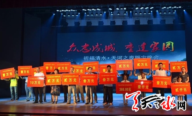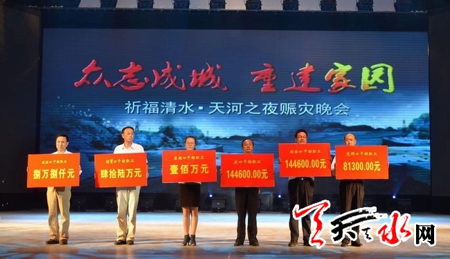 天天天水网讯 【记者 漆艳】“这是心的呼唤,这是爱的奉献……”8月5日晚,清水县"祈福清水•天河之夜"赈灾晚会在轩辕大剧院举行,来自社会各界的爱心人士及企业单位捐款共计523.0666万元。