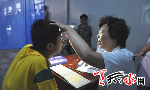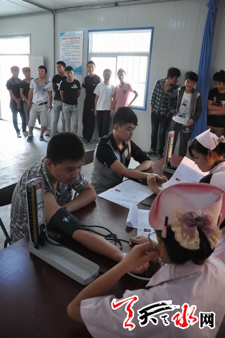 天天天水网讯(记者 孙镇 杨旭)8月10日,在秦州区人民医院内,医生正在对应征入伍青年进行体检。据了解,今年秦州区计划应征260名左右新兵。此次征兵体检的项目延续了去年的标准,体检内容包括内科、外科、五官等10项,通过严格的检查和测试,按照国家标准决定应征青年体检是否合格。