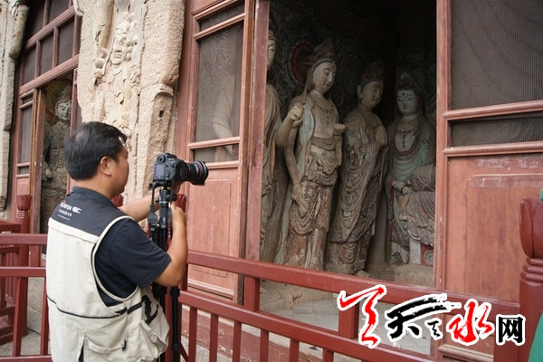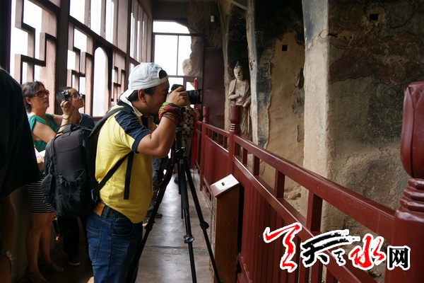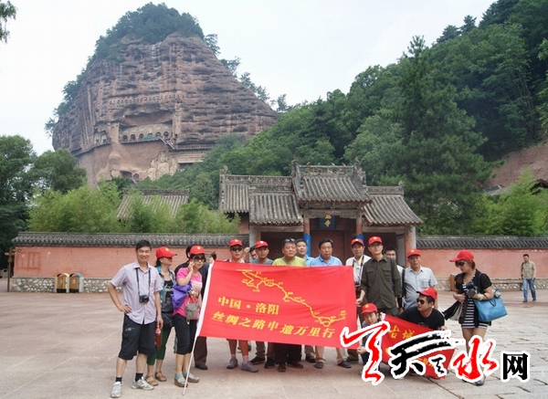 天天天水网讯【记者 马放】8月15日,由洛阳丝绸之路与大运河研究会、中央人民广播电台、河南电视台、大河报、东方今报洛阳记者站、洛阳广播电视台等媒体组织的“牵手丝路、对话文明——2013丝绸之路申遗大型文化采风活动”一行24人到天水市采风,对麦积山景区进行采访拍摄。