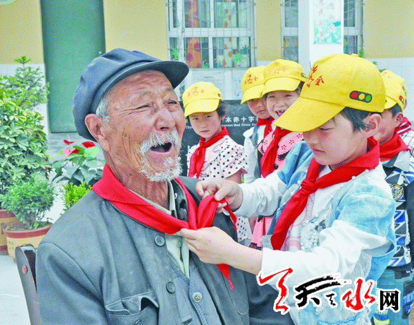 该村25岁青年李昊2010年从陇东学院毕业后,便进入麻沿河小学任教并担任了一年级的班主任。今年“六一”前夕,他便邀请锁老前往学校向学生们作了报告,给新加入少先队员的同学们进行了一次爱国主义教育。