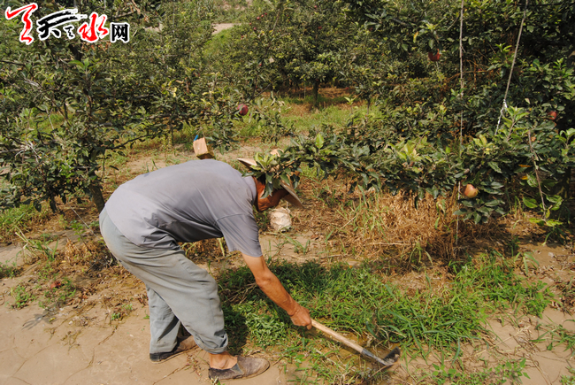 天天天水网讯【记者 成彦君】8月21日,天水市麦积区甘泉镇吴家寺村村民何师傅正在自家果园里清除杂草,为抢种油菜、大蒜做准备。