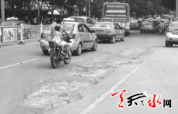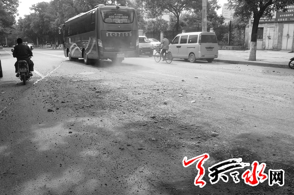 秦州区合作北路十字至新华路市五中这段道路,作为城区的交通要道,一直以来因过往车辆密集,尤其是路边修车及大型运输车辆常年对路面进行碾压,使路面负荷超载,导致该路段坑槽病害严重。如今整条路段的路面可谓大坑连着小坑,更露出数条深深的坑槽,导致过往行人与车辆颠簸难行,市民怨声载道。