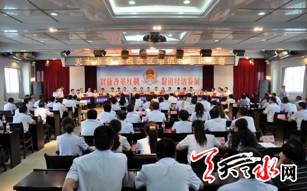 天天天水网讯(记者孙燕芸)为检验和巩固前一阶段营业税改征增值税试点培训和学习成果,确保“营改增”试点在天水市试点推行,8月27日下午,由天水市“营改增”试点工作领导小组办公室主办的“营改增”知识竞赛在市国税局举行。