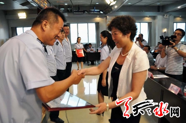 天水市副市长、市“营改增”试点工作领导小组组长温利平观看了知识竞赛并为获奖代表队颁奖。