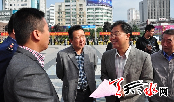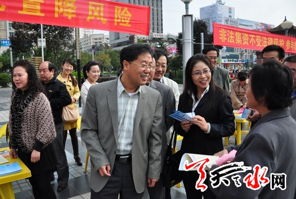 天天天水网讯(记者 孙镇)9月27日,天水市整治非法集资领导小组办公室在龙城广场组织开展了金融知识及打击非法集资集中宣传活动。银行、保险、投资咨询、投资担保、典当、证券等40多家金融单位和部门通过发放资料、设立展板、悬挂横幅、推介金融产品等方式,向广大市民宣传金融法律法规、金融风险防范及金融信用征信等知识,倡导公众提高金融意识,培养正确的投融资理念。天水市副市长徐庆宏视察了集中宣传活动。