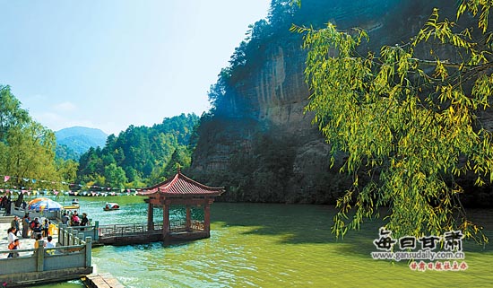 10月4日,游客在天水市仙人崖景区欣赏美景。据了解,国庆黄金周前4天,仙人崖景区每天接待游客达到4500人次。