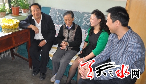 天天天水网讯【记者蔚军平】10月8日,秦州区大城街道办干部带着水果、牛奶等慰问品,看望了共和巷社区92岁高龄的李金林老人,了解了老人的身体和生活情况,并向老人致以节日的问候和祝福。