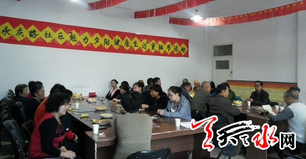 天天天水网讯 重阳节期间,秦州区西关街道办永庆路社区为了使辖区老年人度过一个快乐、祥和的节日,在庆华庭居党员活动室举办以“魅力夕阳,健康生活”为主题的“敬老月”活动,向辖区老年人致以节日的问候和祝福。