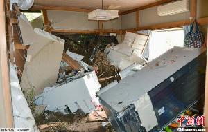 当地时间2013年10月16日,日本遭今年第26号台风“韦帕”台风袭击。图为被台风毁坏的房屋。