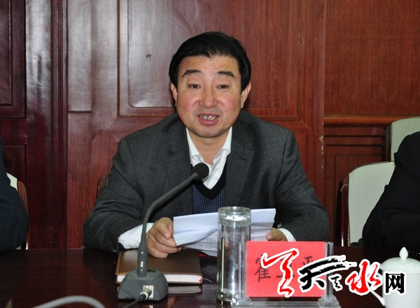 王平指出,天水市旅游资源丰富,区位优势明显,位居成都、西安、兰州黄金旅游线路的中心位置。天水市今后的旅游产业发展应抓住优势资源,依托优质果品产业,开发特色农副产品,提高农产品附加值,促进农民群众脱贫致富。王平希望天水市政府加强网络建设,依托互联网宣传推介天水的旅游资源。王平同时希望天水市政府积极主动与旅游业商会各成员联系洽谈,推动旅游开发项目签约落地。