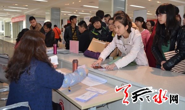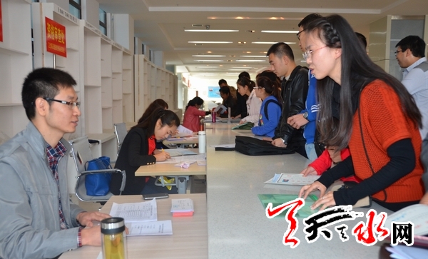 天天天水网讯(记者 李欣桐 实习生 方旭)10月22日,我市2013年市县区事业单位公开招聘报名工作正式启动。位于市人力资源社会保障大厦二楼大厅的市直事业单位公开招聘报名点人头攒动,前来报名应聘的人员络绎不绝。据悉,今年全市事业单位公开招聘工作人员815名,其中市直事业单位45名,秦州区47名,麦积区61名,秦安县105名,甘谷县200名,武山县165名,清水县87名,张家川回族自治县105名。报名方式采取现场报名的方式,时间为22日至25日,笔试时间定于11月24日。