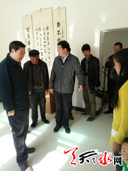 天天天水网讯【记者 王晓馨】10月21日,省政协副主席张津梁深入“双联”联系点清水县秦亭镇赵尧村开展了帮扶调研,实地察看了该村新农村建设、产业发展、产业路修筑等情况,看望慰问了联系户。并深入到秦亭镇樊夏村、天河酒业、永清镇西关社区新增加的三个“双联”点进行了调研,与干部群众、企业负责人就如何开展好“双联”行动进行了深入交流。