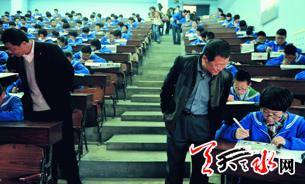 (天水晚报领导与学校领导观看同学们答题情况)