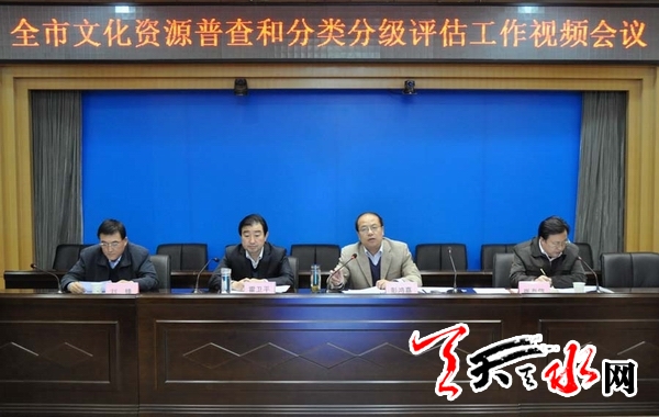 天天天水网讯【记者 马放】10月28日,天水市召开全市文化资源普查和分类分级评估工作视频会,会议通报了《天水市文化资源普查和分类分级工作实施方案》、《天水市文化资源分类分级方案》,对下阶段工作进行了安排部署,中共天水市委常委、宣传部长、市文化资源普查和分类分级评估工作领导小组组长彭鸿嘉出席会议,天水市副市长、领导小组副组长霍卫平主持会议。