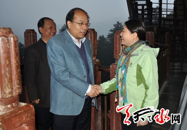 天天天水网讯(记者 令文慧)由中央电视台摄制的5集大型高清电视纪录片《麦积山石窟》,日前在麦积山拍摄正酣。10月29日下午,中共天水市委常委、宣传部长彭鸿嘉轻车简从,到拍摄现场看望慰问了正在拍摄的剧组人员。