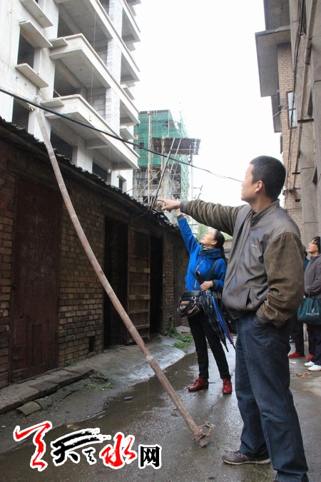 10月31日,家住麦积区商埠东路217号家属楼的王先生致电热线,他住的家属楼紧邻一栋在建高层楼,上面掉下的沙土和小石子经常光顾家属院,前不久该高层楼施工工地居然掉下一根三米长的钢管,砸破了他家柴房的屋顶后,弹落在家属院中,虽未造成人员伤亡,但给居民们造成了莫大的恐慌。