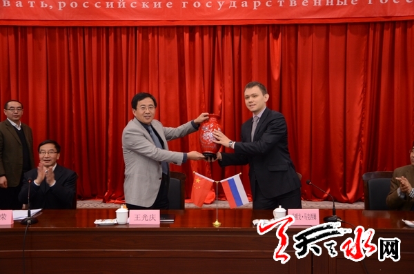 天天天水网讯(记者 漆艳)11月4日,由莫斯科大学法明戈•马克西姆先生带领的俄罗斯联邦政府公务员考察团一行来天水市访问。市委常委、组织部长王光庆,市人大常委会副主任黄孝荣当日会见了考察团一行。