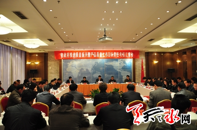 在考核汇报会和反馈会上,天水市政府向考核组汇报了全市推进质量振兴和产品质量工作目标责任完成情况,考核组反馈了检查考核情况。