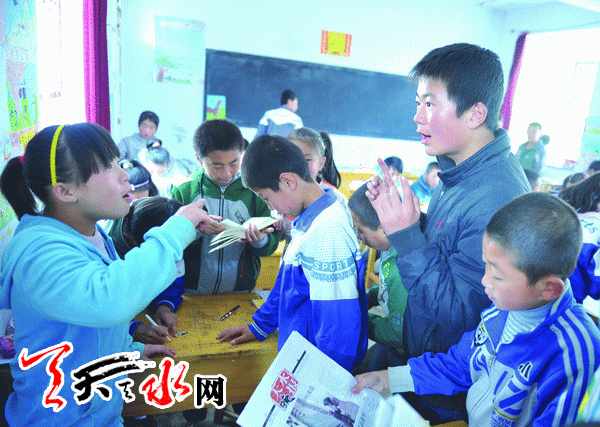 11月5日,《天水晚报》“中国梦·汉字情”汉字听写活动走进秦州区娘娘坝镇李子中心学校,与这里的同学们进行汉字听写互动,并向学校送去了爱心读者捐赠的500多本图书。
