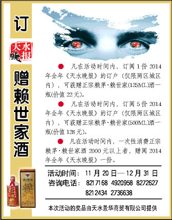 《天水晚报》、服务社会、面向家庭、贴近生活、关注民生,为您服务每一天。各邮政局(所)均可订阅,国内统一刊号:CN62—0061,邮发代号:53—70。