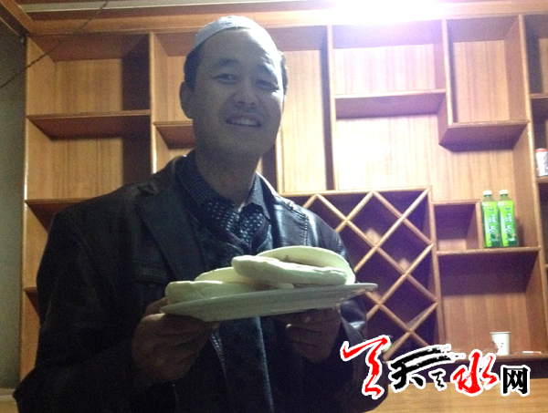 李胡儿说,他的这家克利穆餐厅开办起一年了,是由全家参与经营,后堂由专门学了厨师手艺的儿子和侄子炒菜,媳妇负责洗碗洗菜,他就负责跑前堂。总体来说生意还不错,因为他主要做的是大众菜,价格不贵,附近的回汉群众也喜欢过来吃饭,顾客也感觉到好吃划算。“除了咱们的本地老乡之外,平时还经常有外地人、摄影记者等来店里尝尝。前两天中央电视台的记者来天水拍摄麦积山的风景,也来咱们这里吃过便饭,能让他们尝尝咱们的地方民族风味菜,我还是很高兴。”
