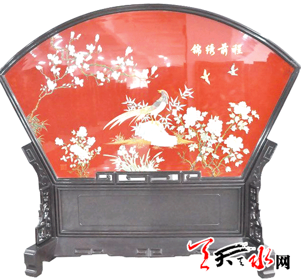 刘爱军说,上世纪初,天水雕漆生产就已经在民间存在,1916年天水开办了第一个陇南工艺厂生产雕漆,请当地书画界名流参与,他们能书善画,题诗落款,使产品大为创新,深得文人雅士的喜爱。1963年,天水市雕漆生产合作社成立。1958年7月,雕漆生产合作社过渡为国营天水市雕漆工艺厂,成为全国漆器行业的重点生产厂家。产品有麻榻、桌、箱柜、屏几和旅游纪念品五大类、数百个花色品种,图案除传统人物、花鸟外,又研制成文物精品系列、石窟艺术系列等新产品。与此同时,还改进了嵌钿工艺,有的屏风上嵌有数万枚田瓜籽形的小螺钿片,与象牙、玉石雕刻的人物、花鸟、文物博古交相辉映,珠光宝气、富丽堂皇,形成一种强烈的地方特色。