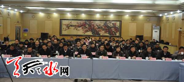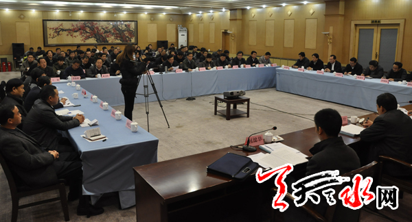 12月1日天水市召开汇报会,中共天水市委常委、政法委书记赵卫东汇报了天水市综治维稳执法监督工作情况,天水市副市长霍卫平主持汇报会,天水市人大常委会副主任黄孝荣,天水市政协副主席何道华出席汇报会。