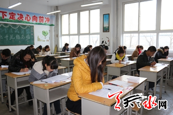 天天天水网讯(通讯员 坚强 移红霞)12月1日,天水市2013年事业单位公开招聘笔试考试在全市五县两区进行,全市12700多高校毕业生参加考试。今年全市事业单位公开招聘除使用金属探测器对入场考生进行安全检查外,首次实行“裸考”制度,即参加事业单位公开招聘的所有考生不准携带任何考试文具和无线电通讯设备入场,包括2B铅笔、橡皮在内的考试文具均由考点统一配备,考生只需携带本人身份证、准考证进入考场。