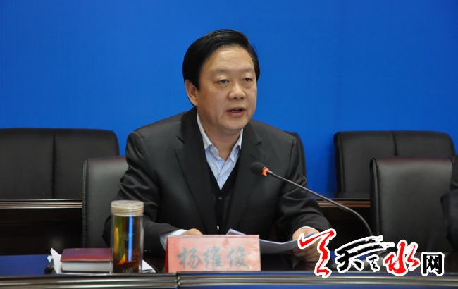 中共天水市委副书记、代市长杨维俊主持会议。天水市人大常委会主任柴金祥,天水市人大常委会副主任宋博华,天水市副市长王钧,天水市政协副主席杨发元出席会议。